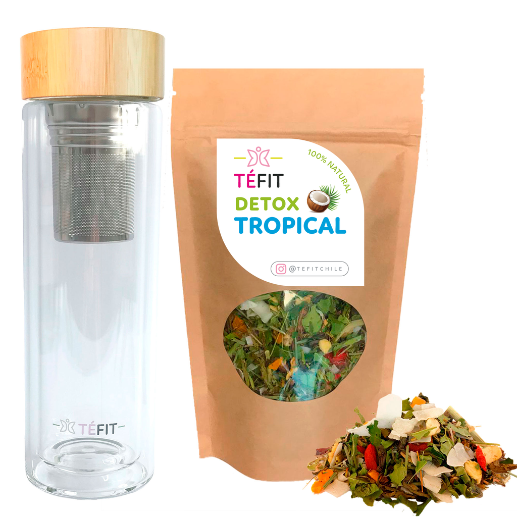 TÉFIT DETOX TROPICAL, prepara tu cuerpo para una rutina anticel con resultados efectivos y duraderos. La hidratación del cuerpo es imprescindible para mantener la piel en buenas condiciones, por eso, nuestro TÉFIT DETOX TROPICAL hidrata tu organismo y previene la aparición de celulitis. Combina el poder de las frutas tropicales, las Bayas de Goji son una super fruta que te protege física y mentalmente, el Coco te ayuda a perder peso y a tener una buena digestión, la Piña aporta vitamina C, el Café verde nos ayudará a la eliminación de celulitis gracias a su capacidad de eliminación de toxinas. Para un mayor control de la celulitis, combínalo con el TÉ ANTICELULITIS FRAMBUESA y las FIT CAPS, de Garcinia de Camboya.
